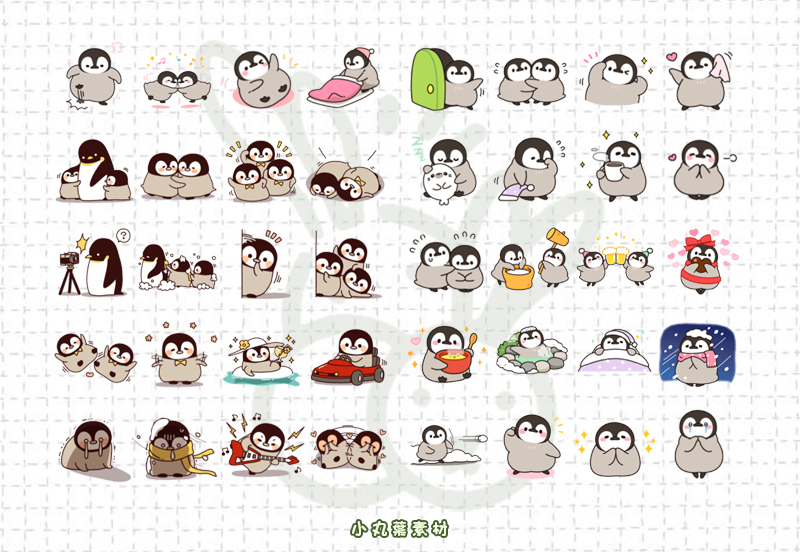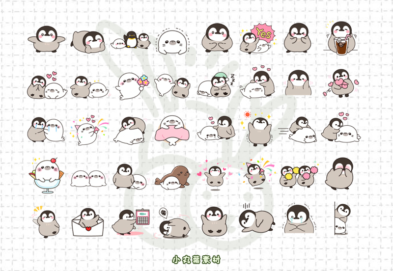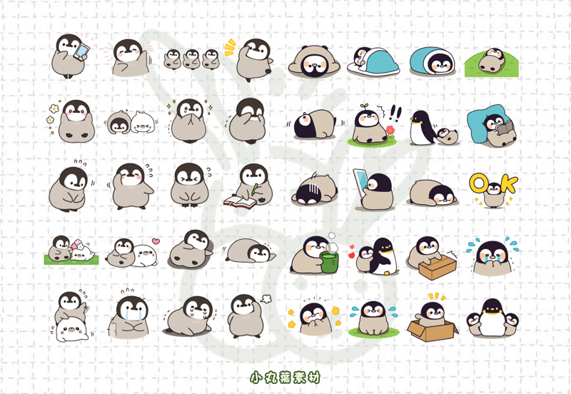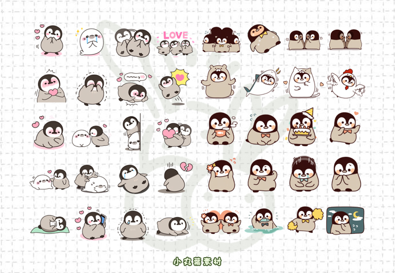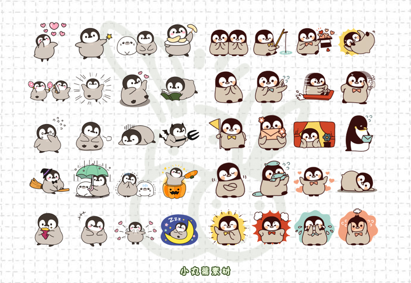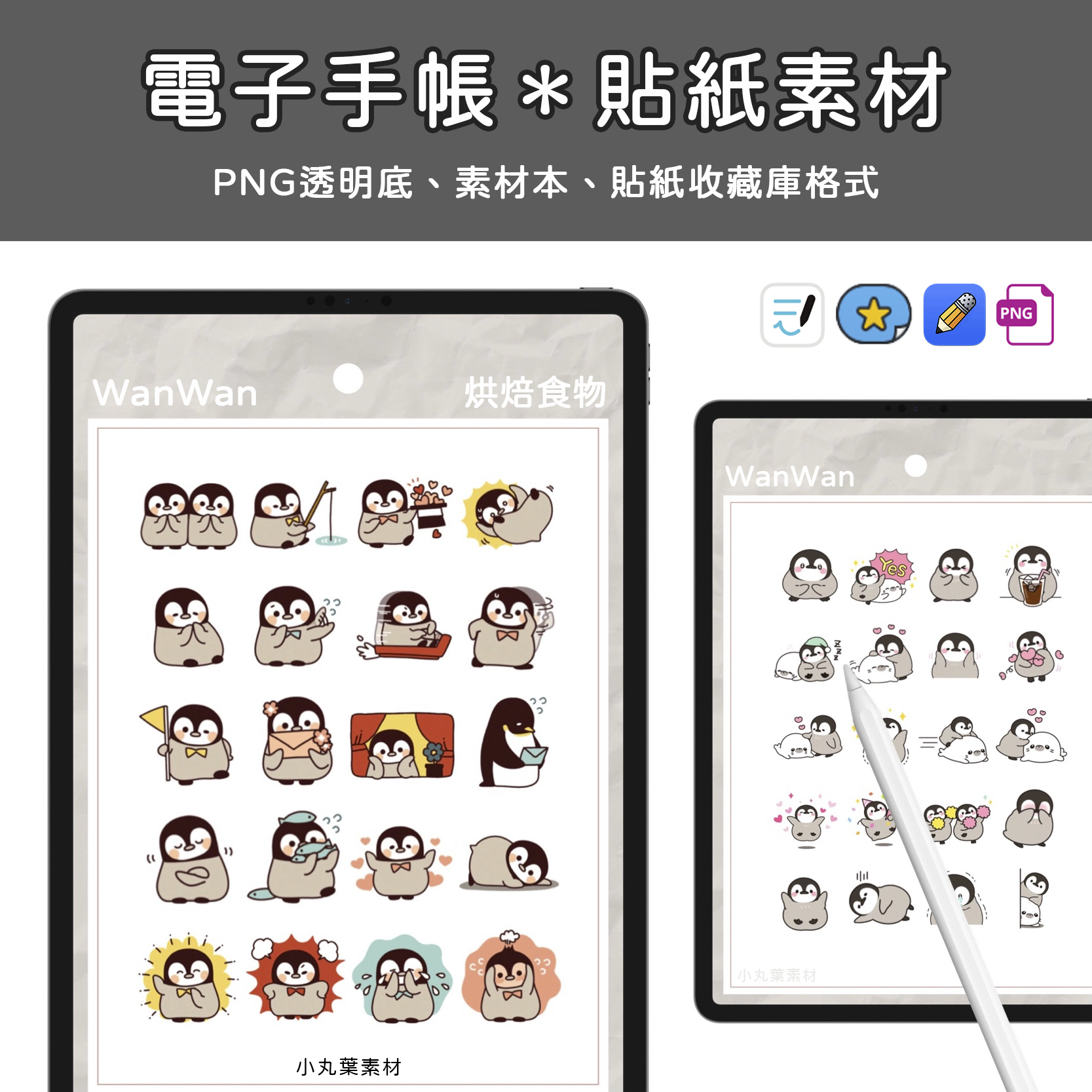 【貼紙素材】啾咪企鵝手帳手繪食物素材電子模板PNG透明免扣去背貼紙Goodnotes